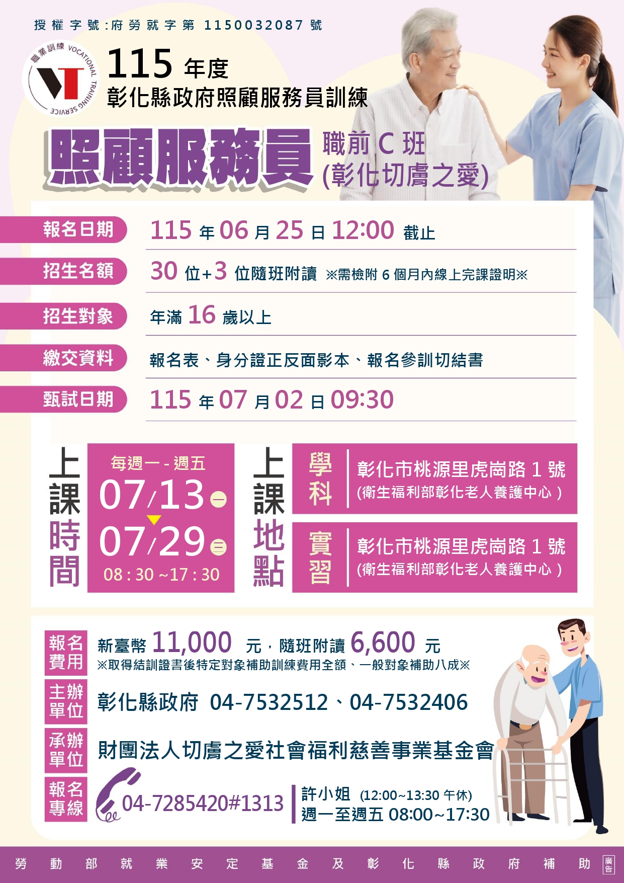 歡迎有意願從事照顧服務工作之失業、待業或在職勞工參加照顧服務員職業訓練!!
