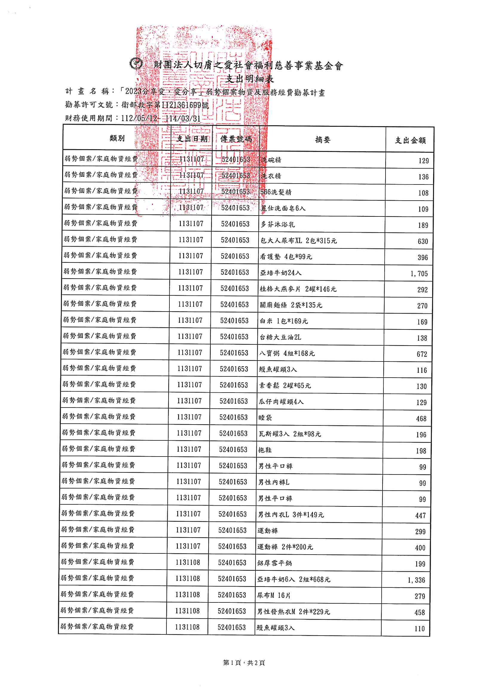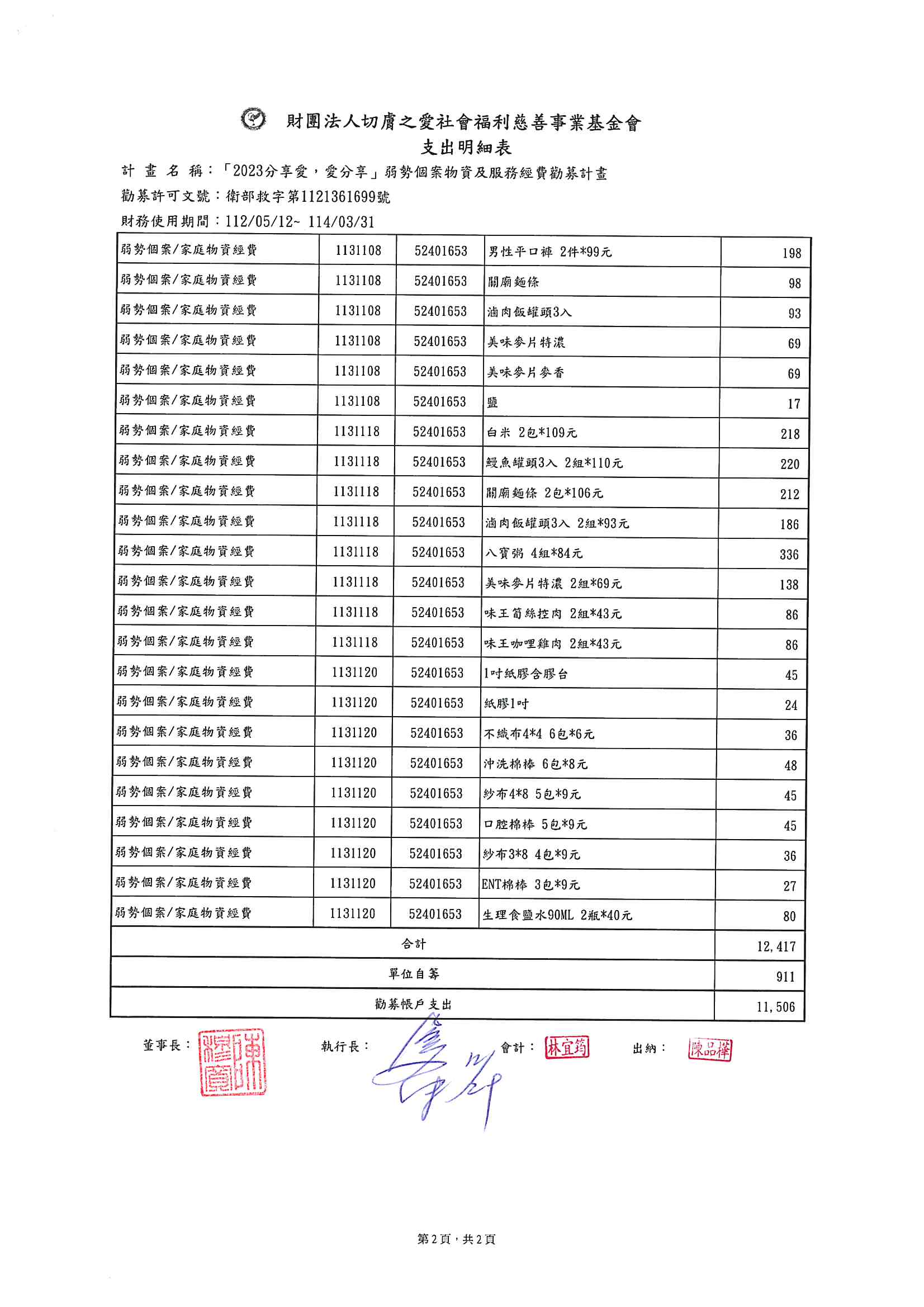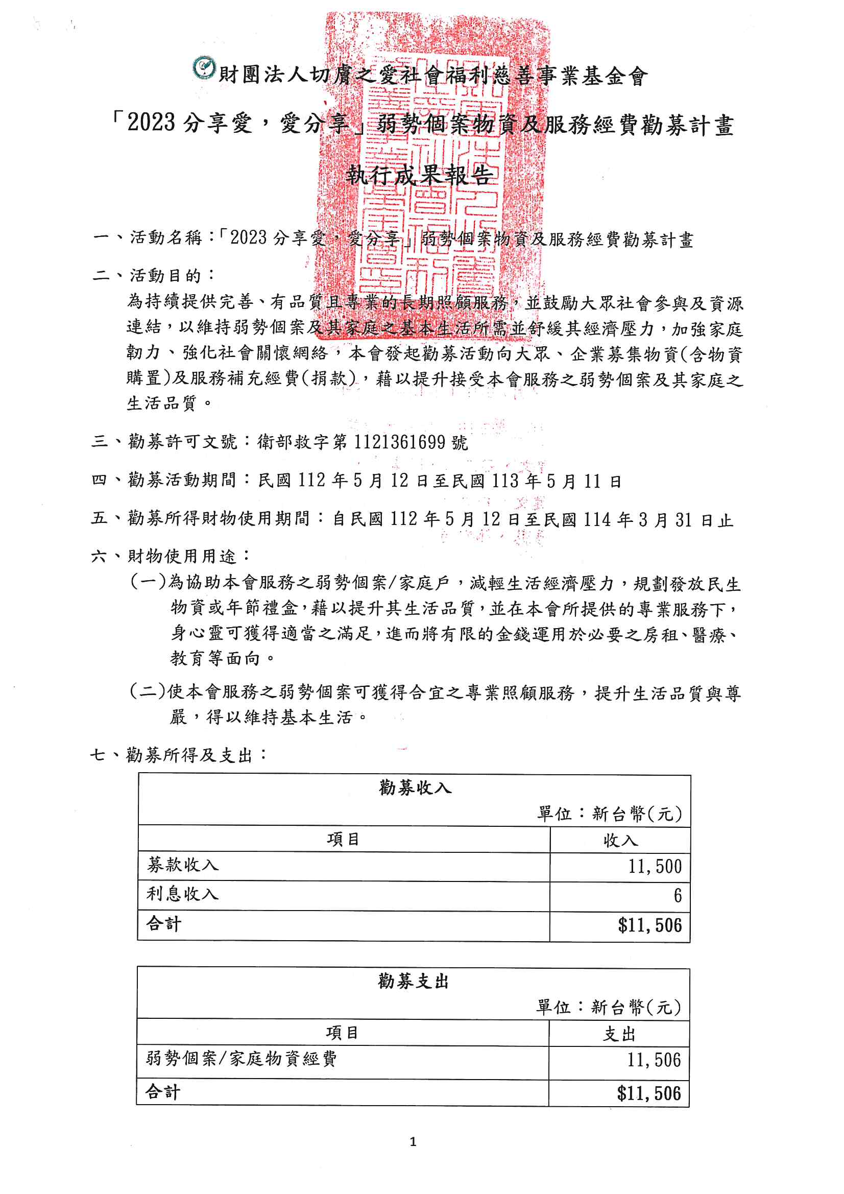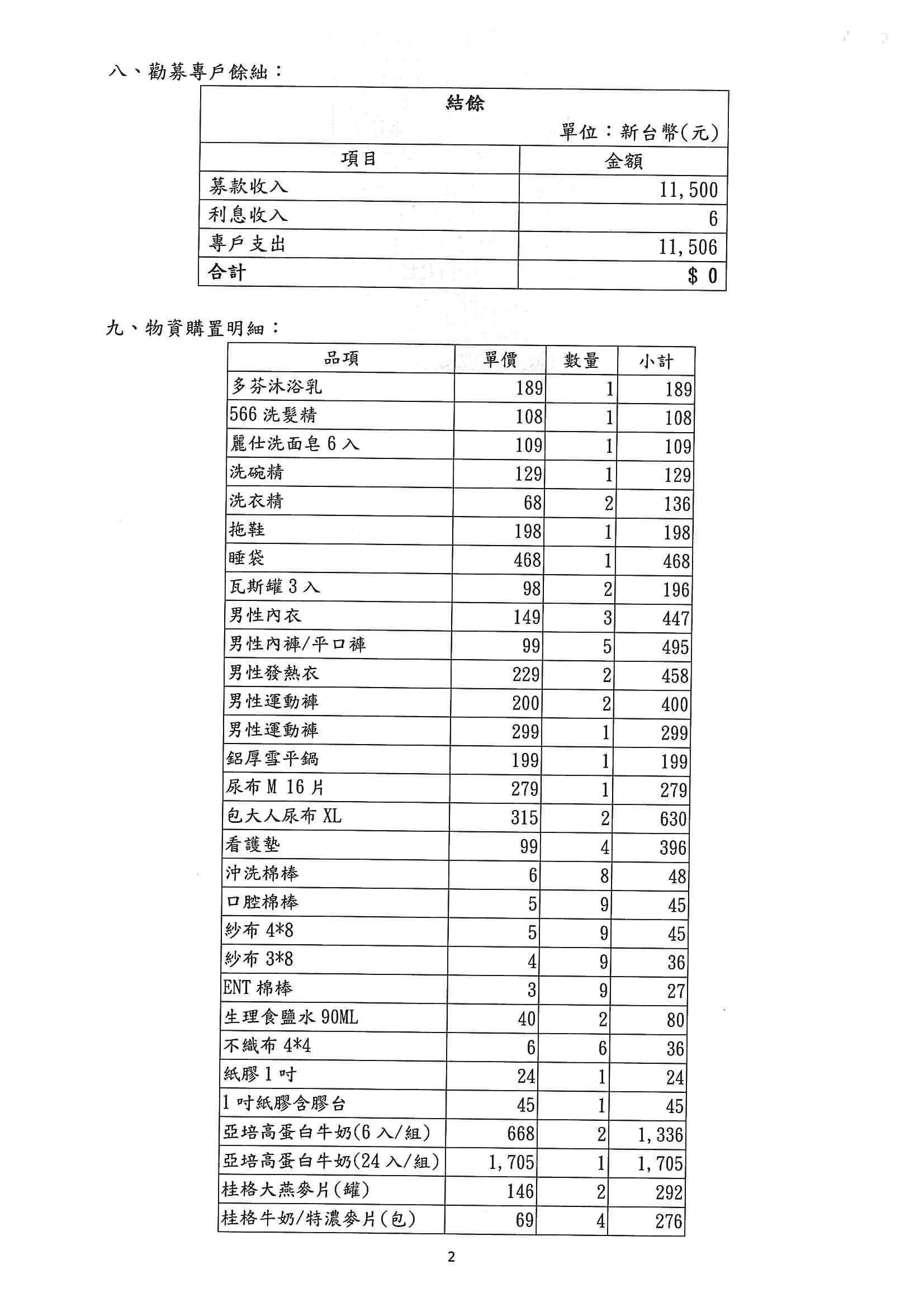 【募款徵信】