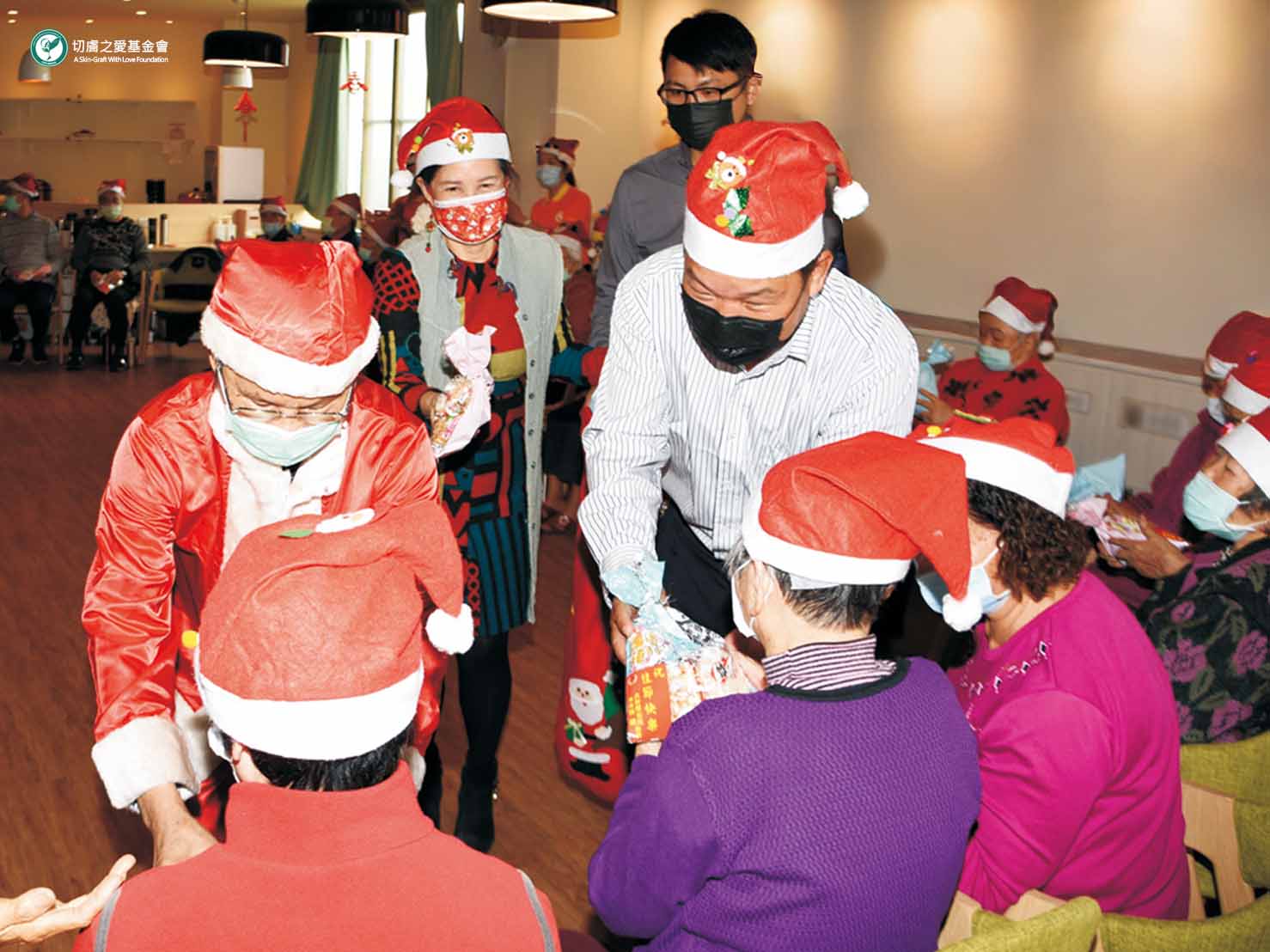 切膚之愛基金會「連瑪玉學苑」今年聖誕大不同,大村鄉鄉長游盛於廿四日前往學苑歡慶聖誕節,為失智長輩帶來既溫馨、又難